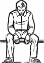 «Поза кучера» — сидя на стуле бедро и голень под углом 90°, стопы на ширине плеч. Плечи слегка опущены, предплечья на бедрах, кисти свисают с коленей. Туловище чуть-чуть наклонено вперед, голова опущена. Вообще подойдёт любая комфортная поза, лишь бы она не стесняла и не вызывала напряжённости мышц. Рис. 3.